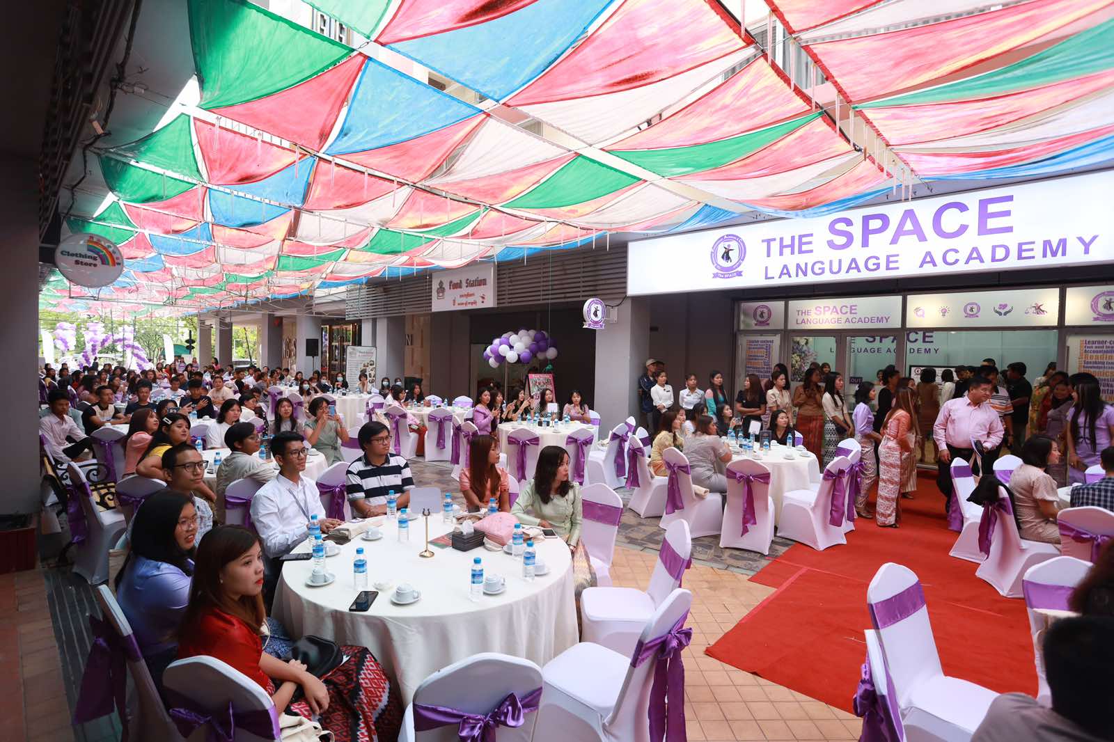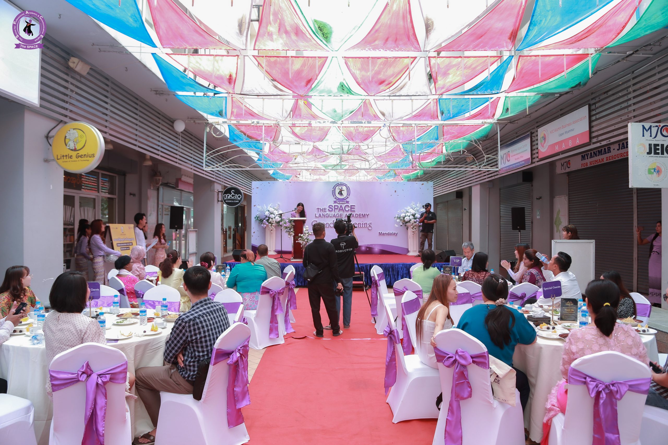 The SPACE Language Academy (Mandalay Branch) Grand Opening ဖဲကြိုးဖြတ် ဖွင့်လှစ်ပွဲ ကို မေလ (၁၄) ရက်နေ့မှာ Mingalar Mandalay တွင် ခမ်းနားစွာ ကျင်းပခဲ့ပါတယ်။ အဆိုပါပွဲကို အထူးဧည့်သည်တော်များ၊ ဆရာ၊ ဆရာမ များ ဝန်ထမ်းများ နှင့် ကျောင်းသား၊ ကျောင်းသူများ တက်ရောက်ခဲ့ပါတယ် ![]()