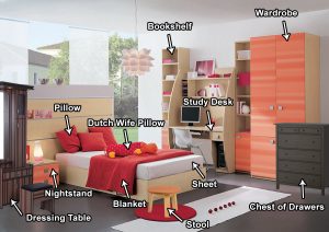 ဒီတစ်ခါတော့ အိပ်ခန်းထဲကပစ္စည်းလေးတွေကို လေ့လာကြည့်ကြရအောင်။